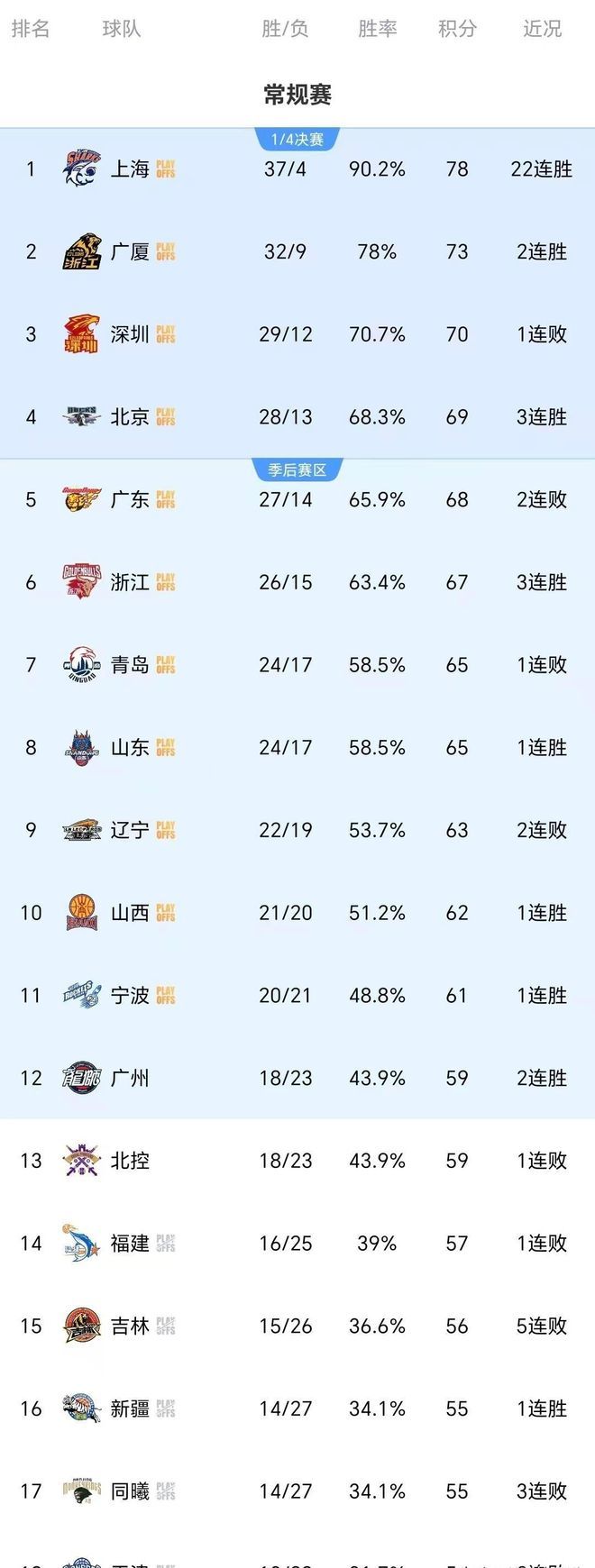 目前前四已经落位,上海、广厦、深圳、北京四队直接晋级八强,不用打第一轮生死战,还能多出来一段时间调整状态,这个名额的含金量真的很高。